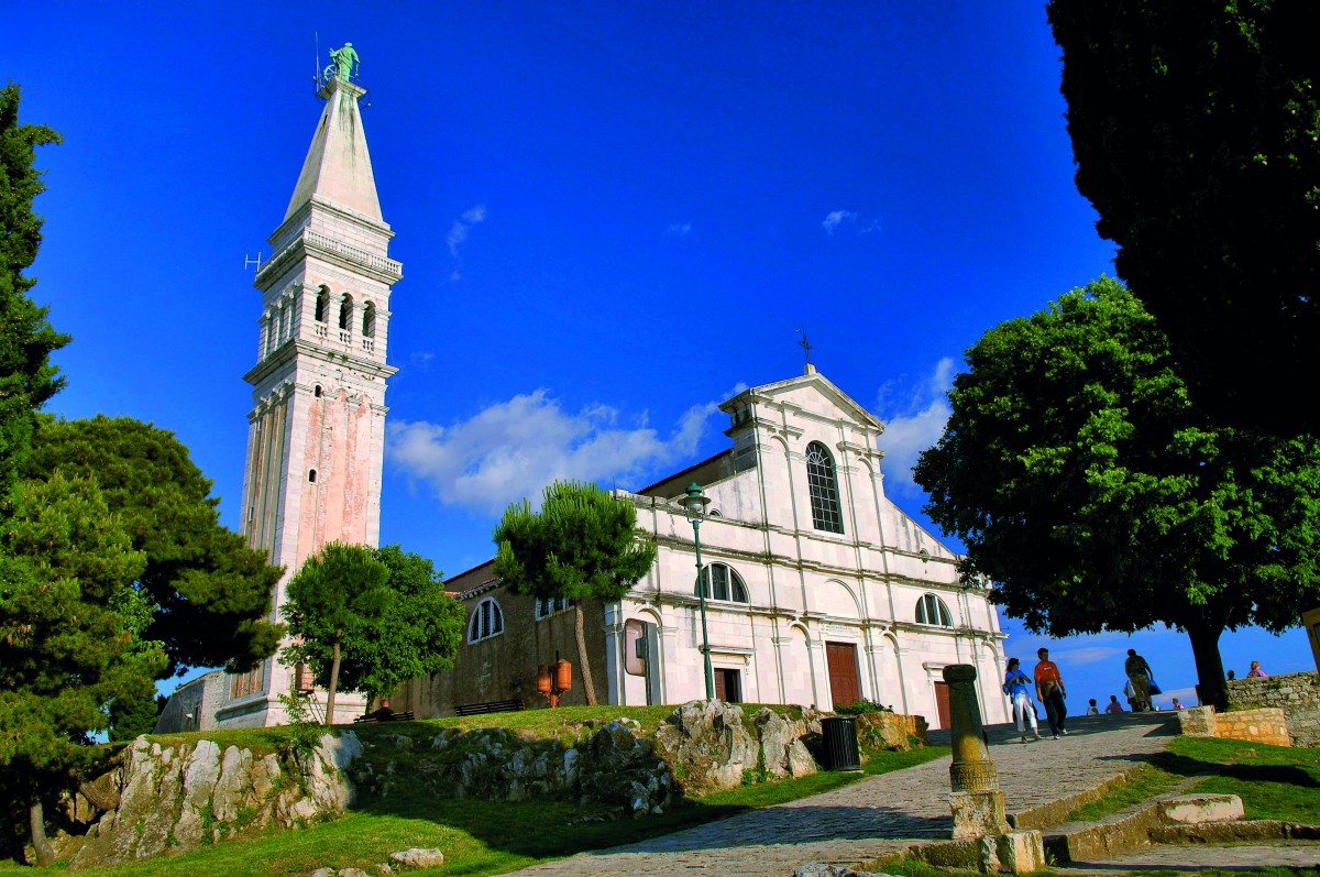 Crkva sv. Eufemije - Otkako je u ranu zoru 13. srpnja 800. godine do rovinjske obale doplovio mramorni sarkofag s tijelom svete Eufemije, Rovinj je postao nerazdjeljivo povezan s ovom mučenicom. Duga je povijest crkve sv. Eufemije: zvonik se gradio od 1654. do 1680. po uzoru na onaj na mletačkom Trgu Svetog Marka. Na vrhu zvonika je 1758. postavljen bakreni kip svete Eufemije,djelo braće Vollani. Velika barokna crkva svete Eufemije građena je od 1728. do 1736. prema nacrtima mletačkog arhitekta Giovannija Dozzija. I dan danas na dan sv. Eufemije stiže rijeka hodočasnika pred sarkofag u kojem se čuva tijelo svete djevice.